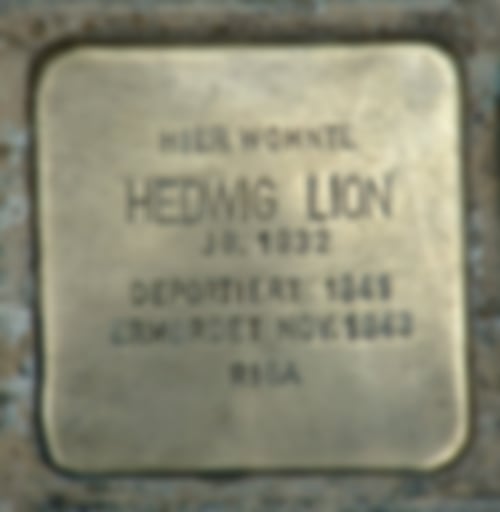 „Stolpersteine“ für Max, Hedwig, und Elisabeth Lion vor ihrem ehemaligen Haus Fährstraße 3, gesetzt auf Initiative von Schülern der Gesamtschule Nettetal im Februar 2012.